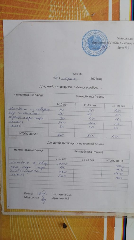 Коммунальное государственное учреждение «Общеобразовательная школа села Лесное отдела образования по Сандыктаускому району управления образования Акмолинской области»;