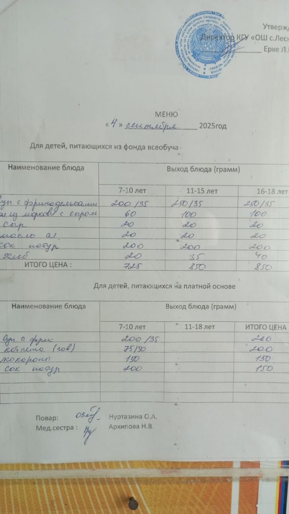 Коммунальное государственное учреждение «Общеобразовательная школа села Лесное отдела образования по Сандыктаускому району управления образования Акмолинской области»;