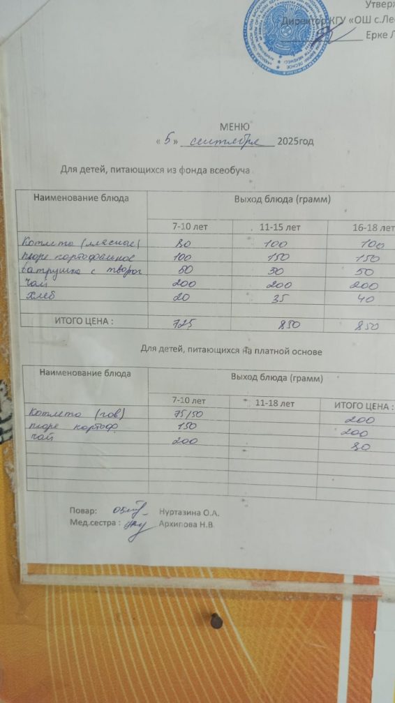 Коммунальное государственное учреждение «Общеобразовательная школа села Лесное отдела образования по Сандыктаускому району управления образования Акмолинской области»;