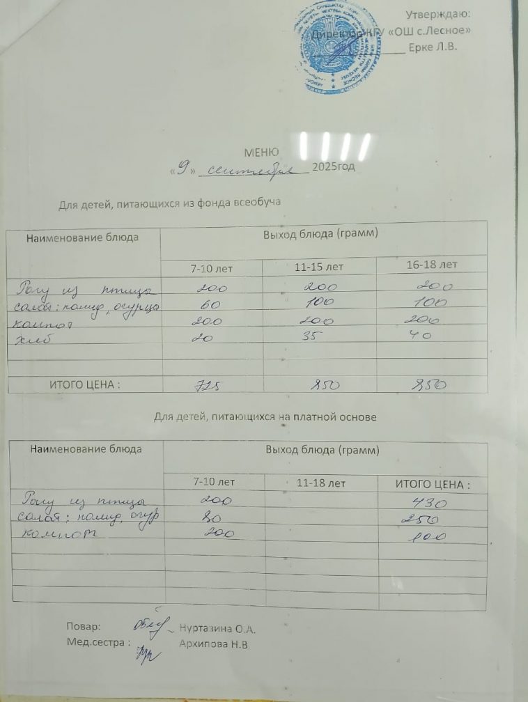 Коммунальное государственное учреждение «Общеобразовательная школа села Лесное отдела образования по Сандыктаускому району управления образования Акмолинской области»;