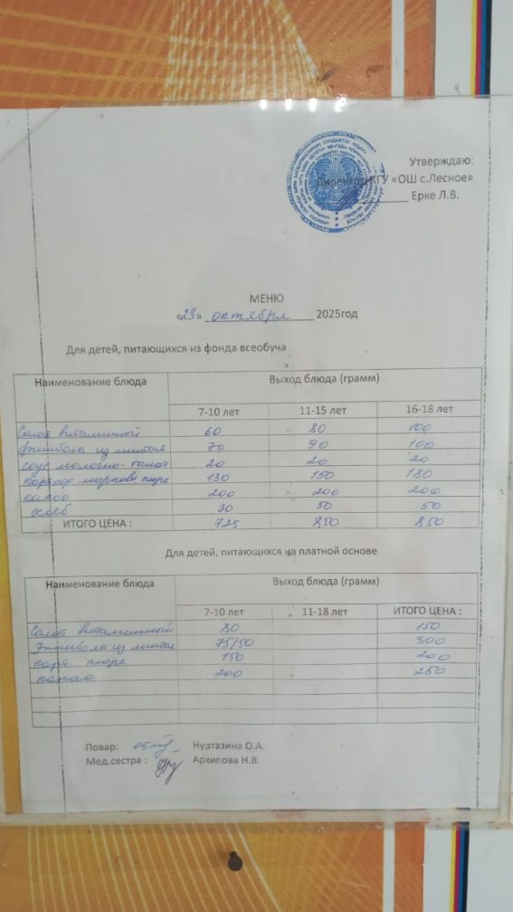 Коммунальное государственное учреждение «Общеобразовательная школа села Лесное отдела образования по Сандыктаускому району управления образования Акмолинской области»;