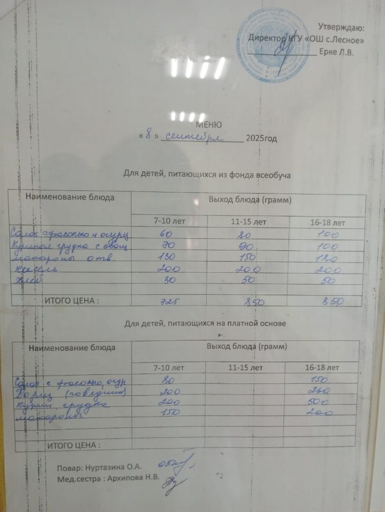 Коммунальное государственное учреждение «Общеобразовательная школа села Лесное отдела образования по Сандыктаускому району управления образования Акмолинской области»;